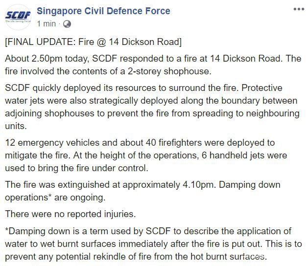 随后,新加坡民防部队就在Facebook发文通报了这一事件: