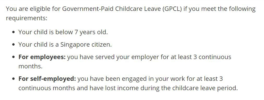 首先,需要符合以下要求的人群才有资格享受政府带薪育儿假(GPCL):