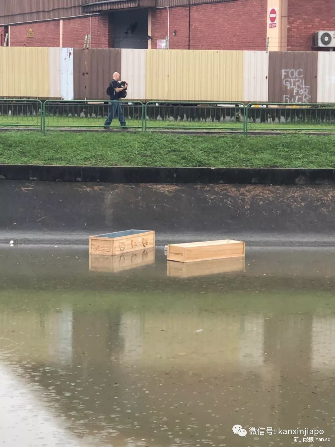 今天(5月8日),新加坡瓢泼的暴雨都可以称为奇观了,不少人都表示差点游泳去上学上班。雨后天晴,更令人瞠目结舌的一幕出现了,有网友拍到了两口棺木,在加冷河的河面上“漂流”。
