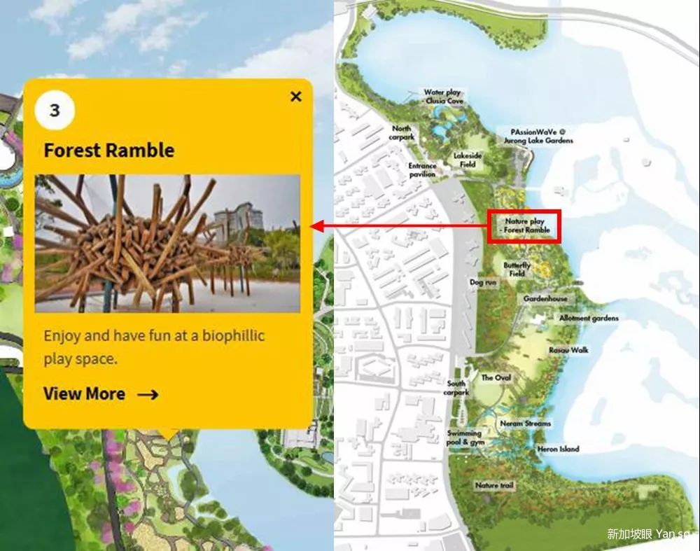 裕廊湖畔花园,在历时三年的建设与生态修复工程后,近期已正式开放。整个区域占地90公顷,首先开放53公顷,其余部分预计2021年起陆续开放。湖畔花园结合了自然、休闲、社区三大元素,不仅为鸟类和昆虫类提供淡水森林栖息地,也为公众提供亲水乐园以及健身房、沼泽生态步道等。既保留了静谧的森林空间,也融入了休闲空间。