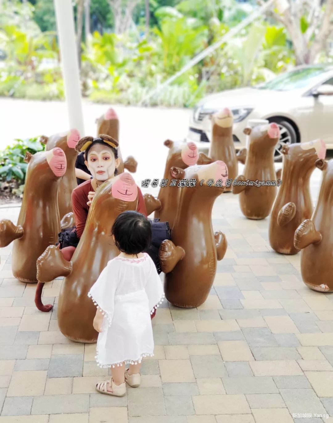湖畔花园的景点分为Nature、Play、Community三种类型,由于天气太炎热,设施太好玩,园子有点大,今天先来逛下小朋友游乐的部分。当天公园入口处有两位很敬业的街头表演者,只要有小朋友驻足,她们就惟妙惟肖的开始模仿小动物,孩子们都目不转睛!