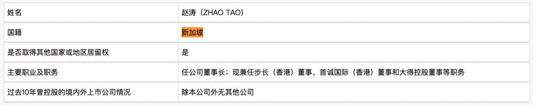 根据步长制药2018官方年报信息,赵涛现为新加坡国籍。