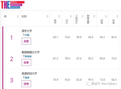感受一下今年的榜单前5名!分别是中国清华大学、新加坡国立大学、香港科技大学、香港大学以及北京大学。