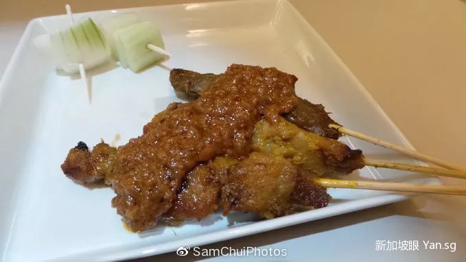 大约飞行到一半的时候,晚餐服务开始了。吃的是新加坡航空公司出了名的沙嗲(Satay)。