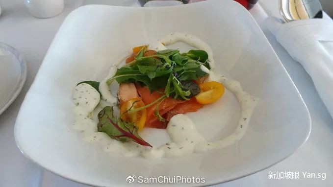 ▲新加坡航空商务舱午餐开胃菜三文鱼