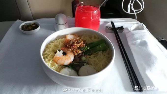 着陆前约2小时我们有一个抵达前的餐点:虾面汤。它真的非常好吃!