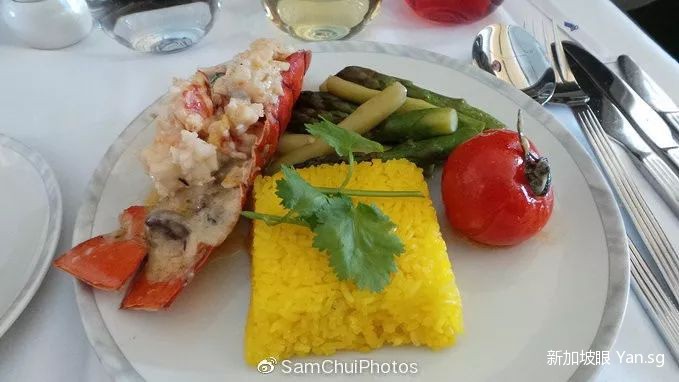▲新加坡航空商务舱午餐龙虾Thermidor