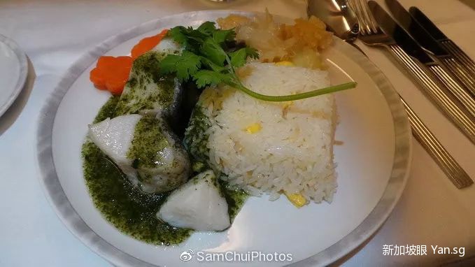 ▲新加坡航空商务舱晚餐鳕鱼配炒饭