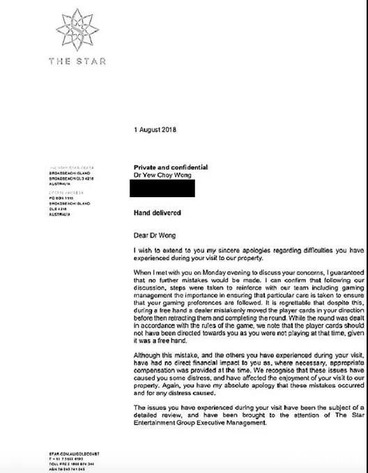 赌场也表示他们的“失误“是荷官在黄没玩牌时把牌发给他,然后把误发的牌收回来。虽然此举让他不开心,但是并未造成黄的损失,并且赌场也向他道歉了。