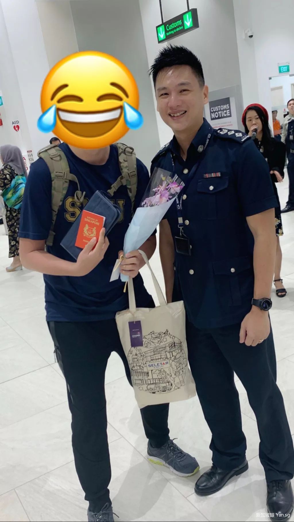 笔者还一不小心成为了第一个到达的旅客,和ICA的officer合了影。