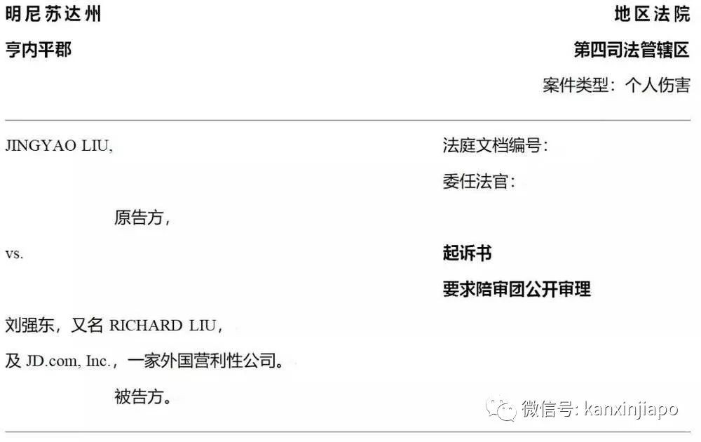 最近几天,因为女主刘静尧实名授权在社交媒体发布了起诉书全译本,披露案件更多关键细节,对刘强东个人及公司提起民事诉讼,寻求5万美元(6万7000新元)的伤害赔偿。