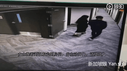 首先,“性侵案”女主(黑衣)刷卡,主动开门让刘强东和助理(白衣女子)进入公寓: