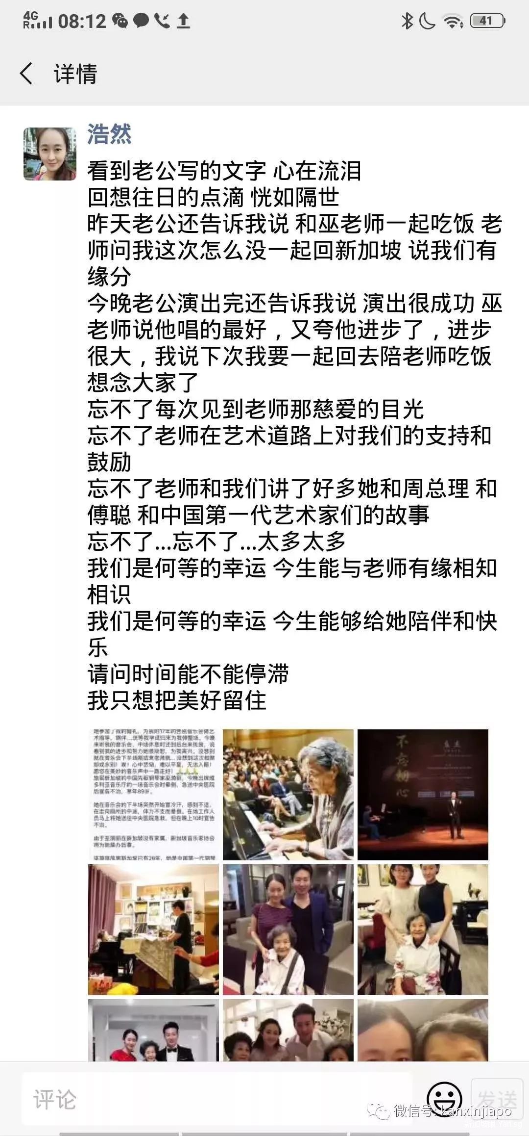 新中国第一代音乐家巫漪丽,昨夜去世于新加坡