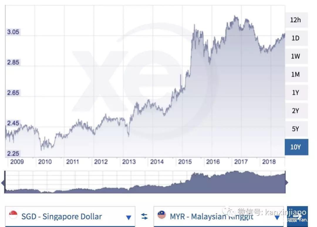 经过20年的经济腾飞,1995年,马币对新币的汇率达到1.7929:1,2000年兑换率达到了2.2078:1,而2015年突破了3:1…….