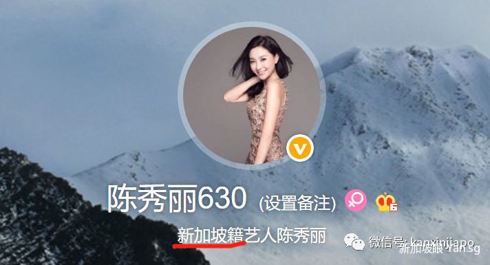 现在她的微博认证已改为新加坡籍艺人陈秀丽。
