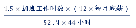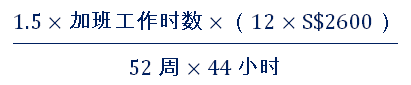 对于每月底薪为S$2600及以上的非劳力工人,加班费用为: