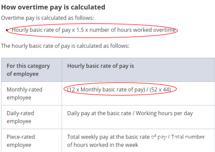 对于超出44小时的加班补贴更是规定得非常详细↓
