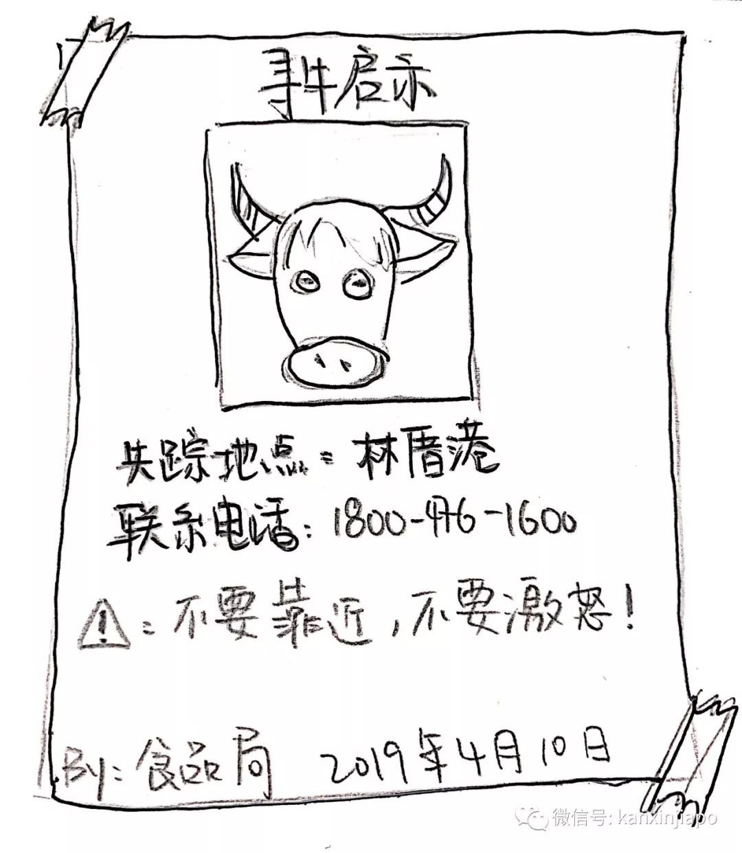嗯,虽然是眼哥的灵魂手绘,但是寻牛启事里的信息可是认真的哦。大家看到了牛也不要擅自靠近,不要激怒它,要拨打食品局的电话通报。