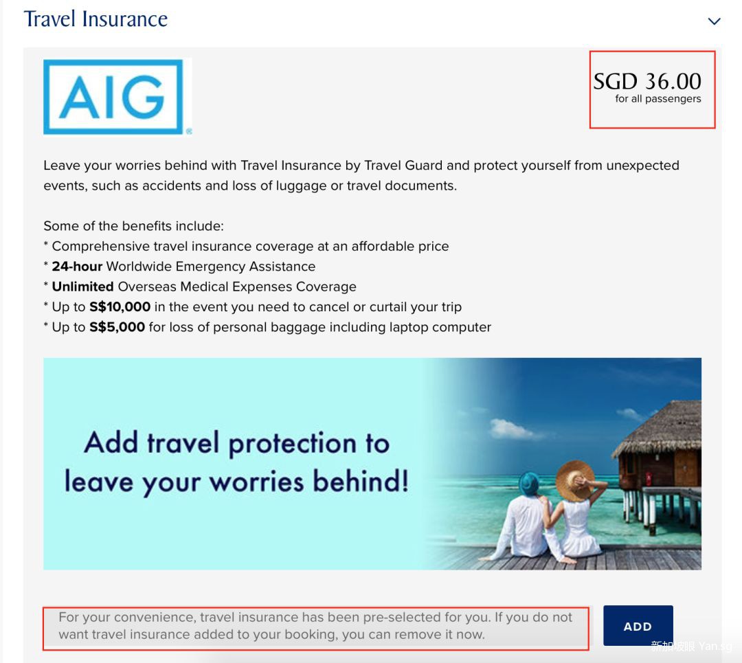 2.在买机票时购买(新航、酷航预定航班时,都有买旅游保险的选项)