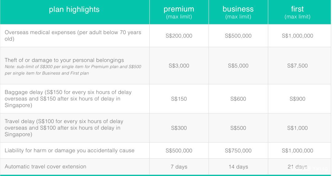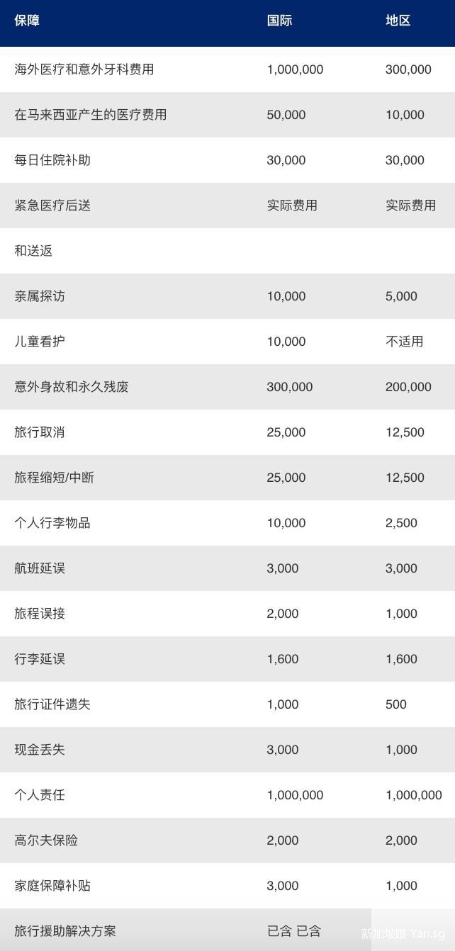 AIG是新航合作的保险公司,可以提供24/7全天候的旅游保险,覆盖广,赔付金额也不少: