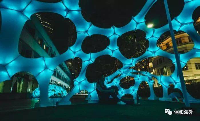 投影都知道,但投影到钟楼和树木上的灯光秀你看过吗?夜晚的新加坡上空像一款墨蓝色的幕布,当映像照上实物,一切都不同了。