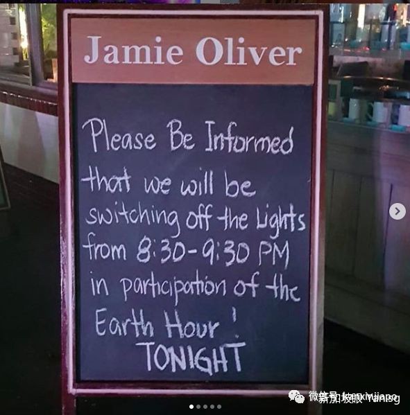 就连米其林大厨Jamie Oliver在新加坡的餐厅也响应了地球一小时的号召,关掉了店里的灯,让客人们节约能源的同时也享受浪漫的烛光晚餐~