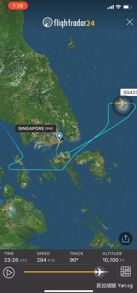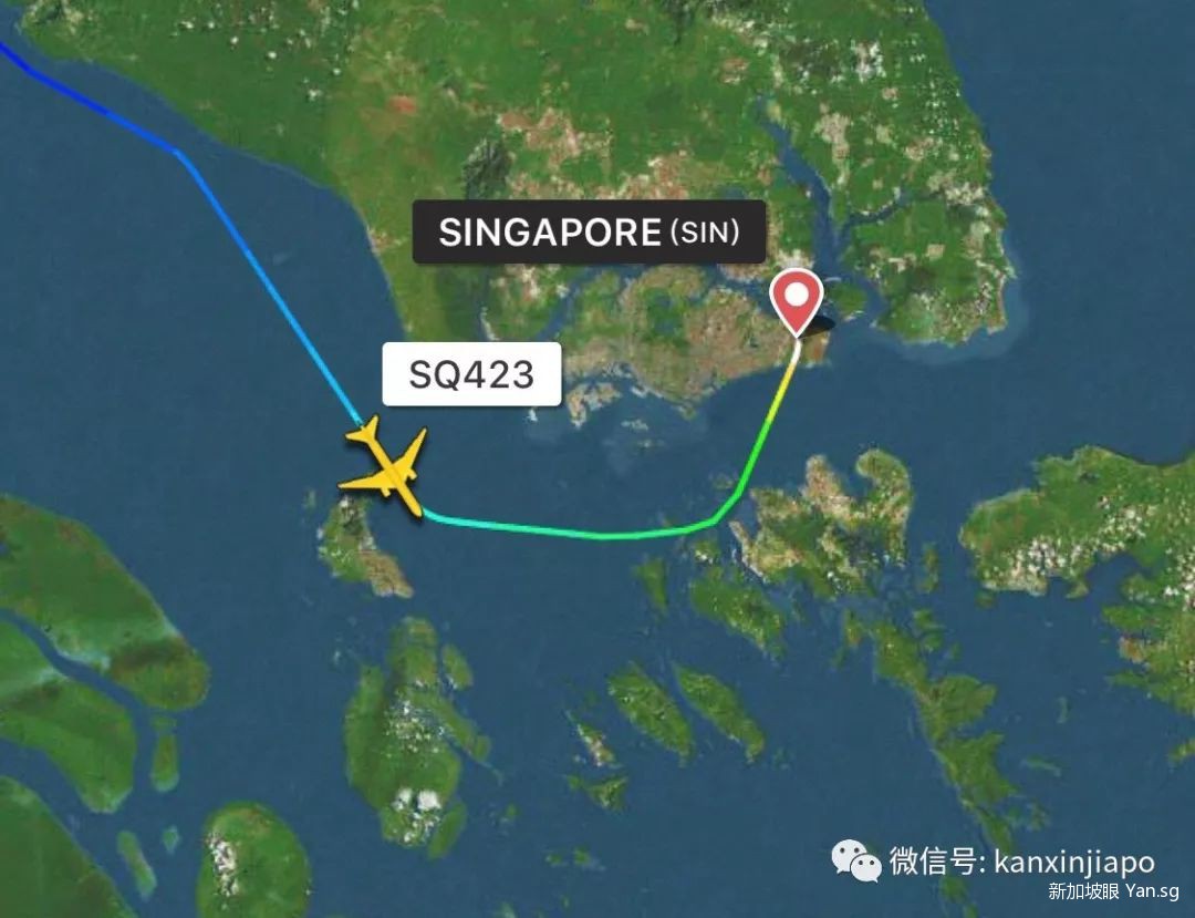 Flightradar记录,飞机飞过了巴淡岛的上空,在新加坡东部的海域里绕了一大圈,又去巴淡岛上空溜了溜,才最终落地樟宜。