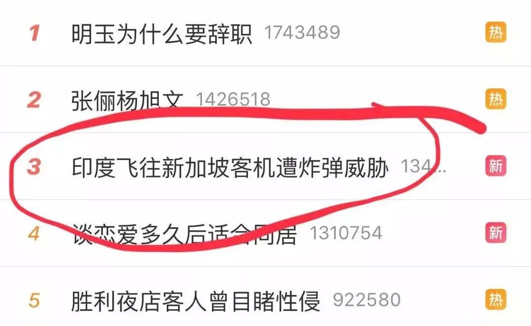 今天早上,新航从印度孟买飞回新加坡的SQ423航班,收到了炸弹威胁!