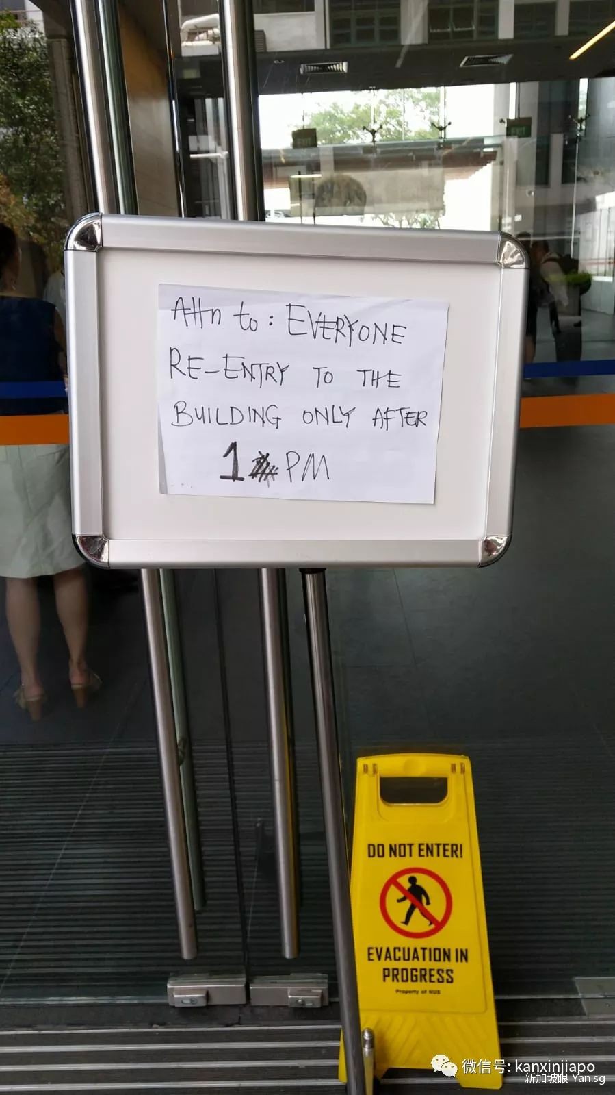 所有人被撤离后,教学楼外迅速立起了告示牌,告诉大家下午1点之后才可以重新进入大楼。