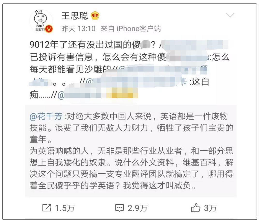前两天,“国民老公”王思聪空降微博热搜,因为他和一位网友就“应不应学英语”撕起来了。