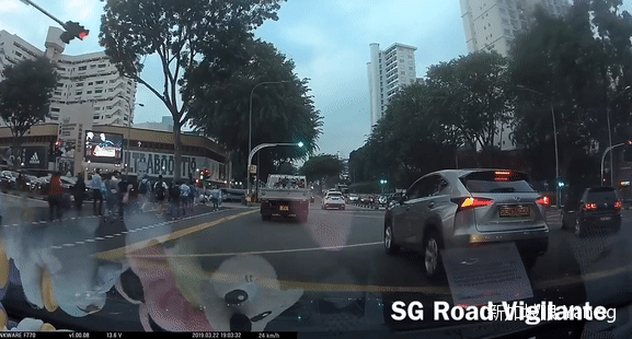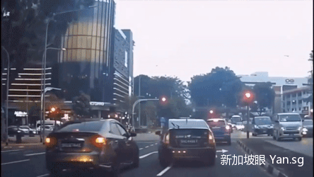 之后,德士又突然加速,紧急转换车道,危险超车,右转闯红灯。