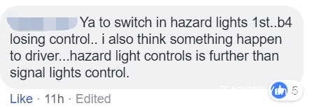 有网友觉得事情很蹊跷,因为德士在失控前,开启了警示灯。司机很可能是发生了什么紧急情况。