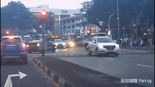 当时,德士突然闯红灯右转,反向车道司机纷纷紧急刹车,才避免相撞。