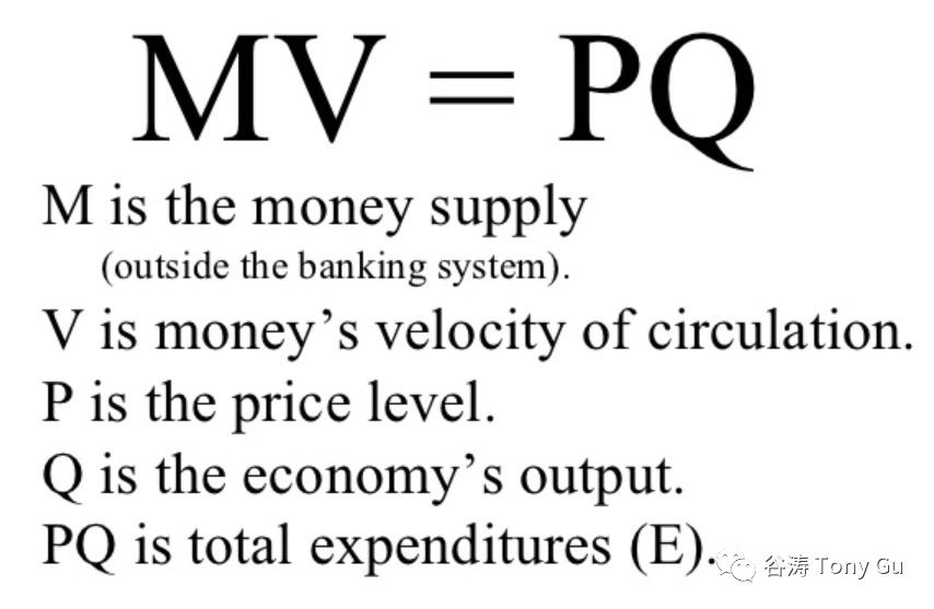 回答这个问题之前,大家要先理解货币和经济的关系,也就是费雪方程式 MV = PQ 。 简单解释如下图所示。