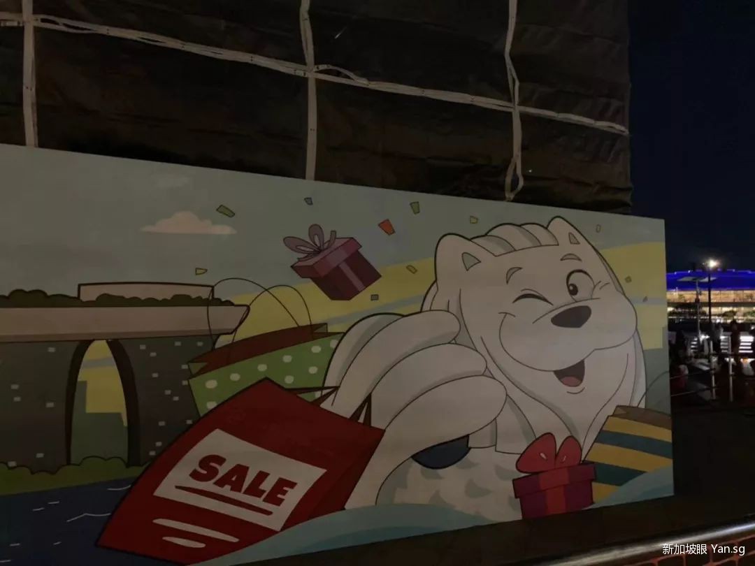 ▲围板上的鱼尾狮还提着购物袋在对人抛媚眼卖萌