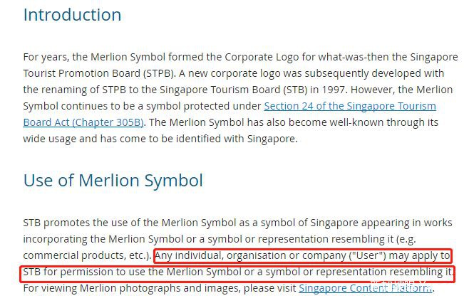 个人或企业组织如果要使用鱼尾狮标志,是要向旅游局提交申请的哦~