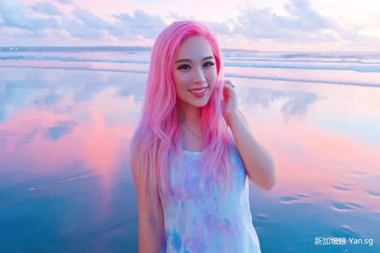 一头亮粉色的头发,还有PS到亲妈都认不出的照骗,夏雪可以说是新加坡网红里面最最最最最最能折腾的了。