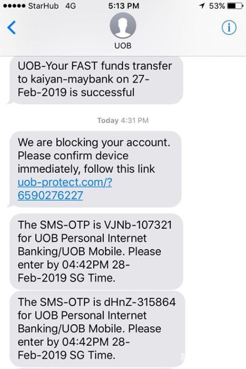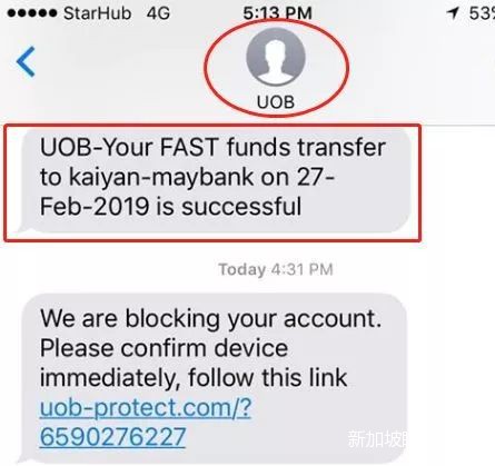 新加坡出现新骗术,骗子冒充银行发送手机短信发给受害人,但是,真!的!很!逼!真!