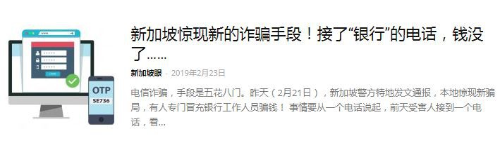 最近,骗子诈骗的手段层出不穷,不久前新加坡警察部队还发布了一则公示,分享利用银行一次性密码(OTP)行骗的新花招。