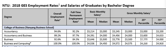 从单个学校的数据看,NTU的商学院就业率不错,商务与计算机的毕业生全都找到了工作,月薪约为4450新币。