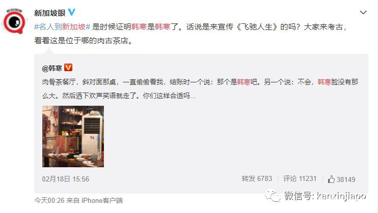 福尔摩斯上身,揪出韩寒最近究竟在不在新加坡