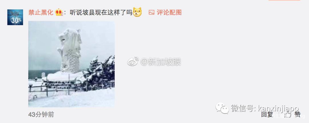 网友甚至开脑洞,给鱼尾狮公园P了个雪景:
