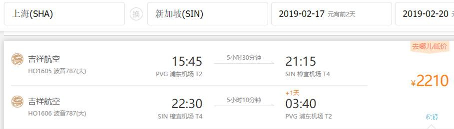 新加坡和上海之间,还有其他三家航空公司可以选择,以下均以上海飞新加坡为例。