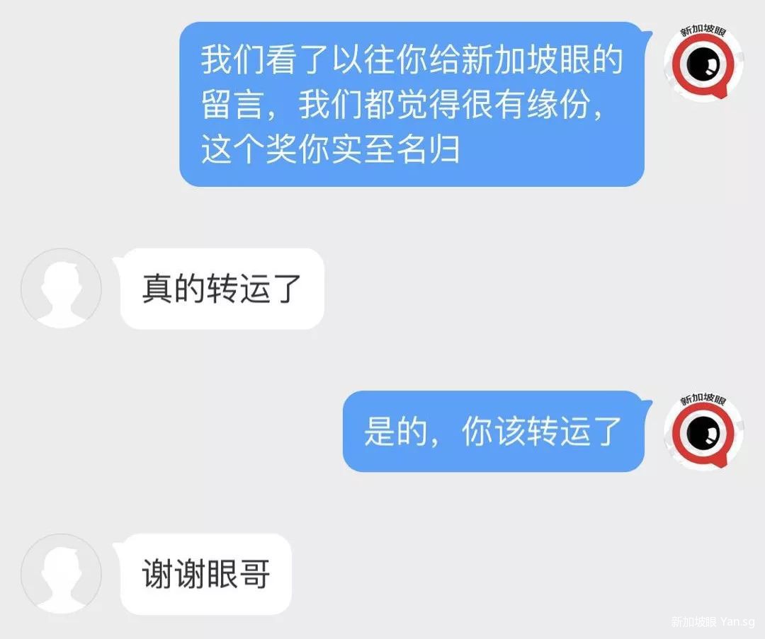 之后,他又凭着自己“绿油油”的年夜饭经历,成功吸引了新加坡眼全体编辑的注意,一举赢得了总价值200新币的锦鲤大礼包!领奖时,网友都感叹自己“终于转运了”。
