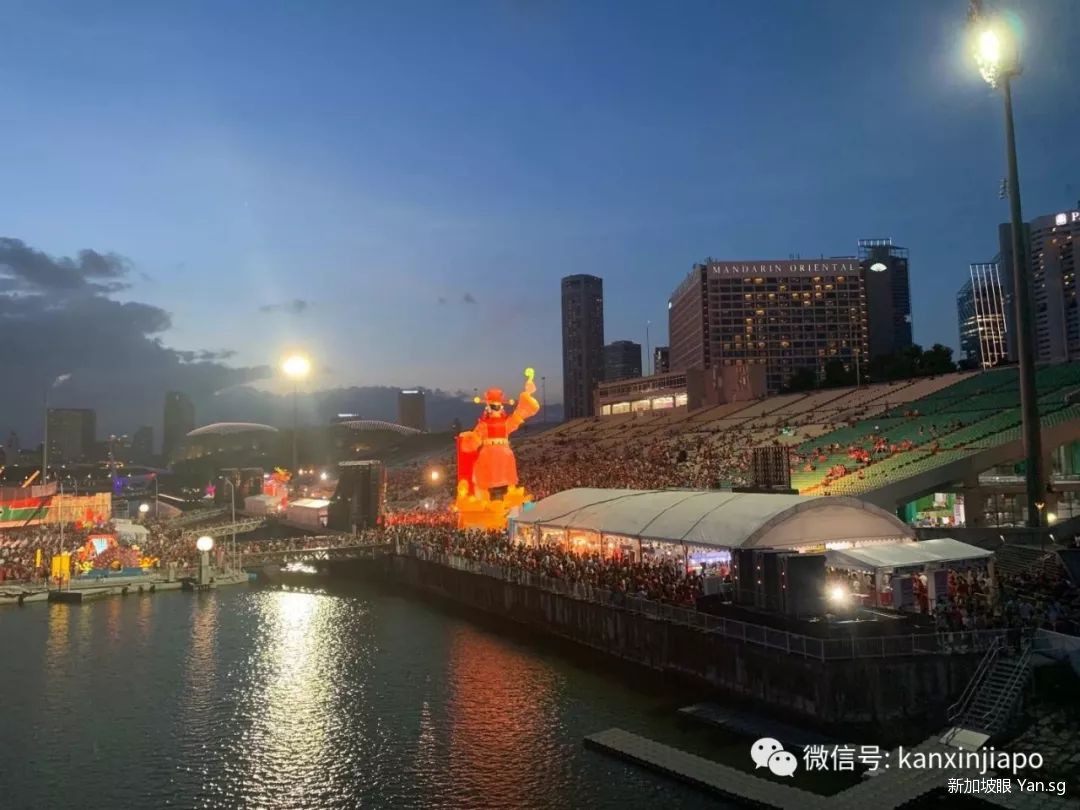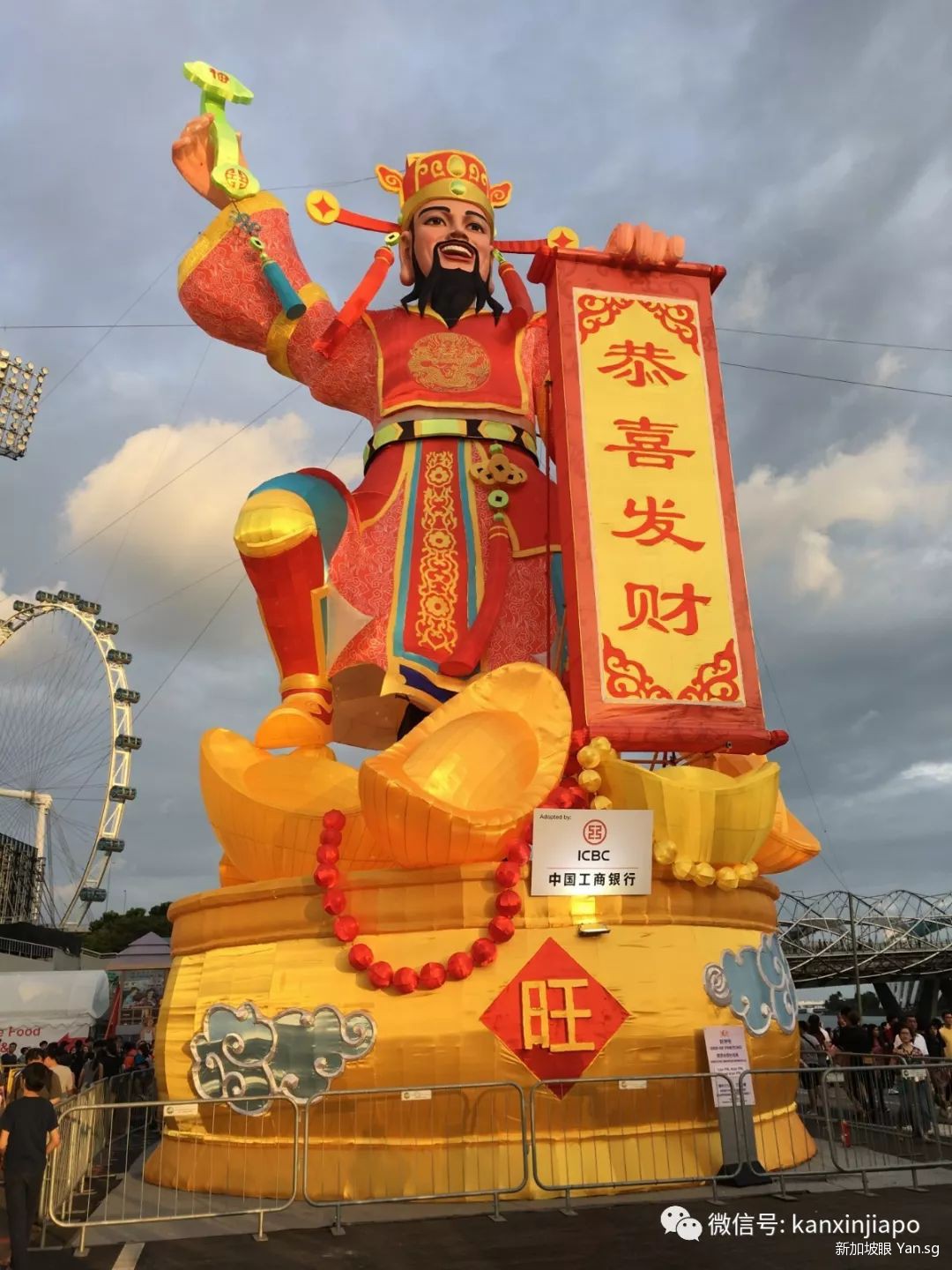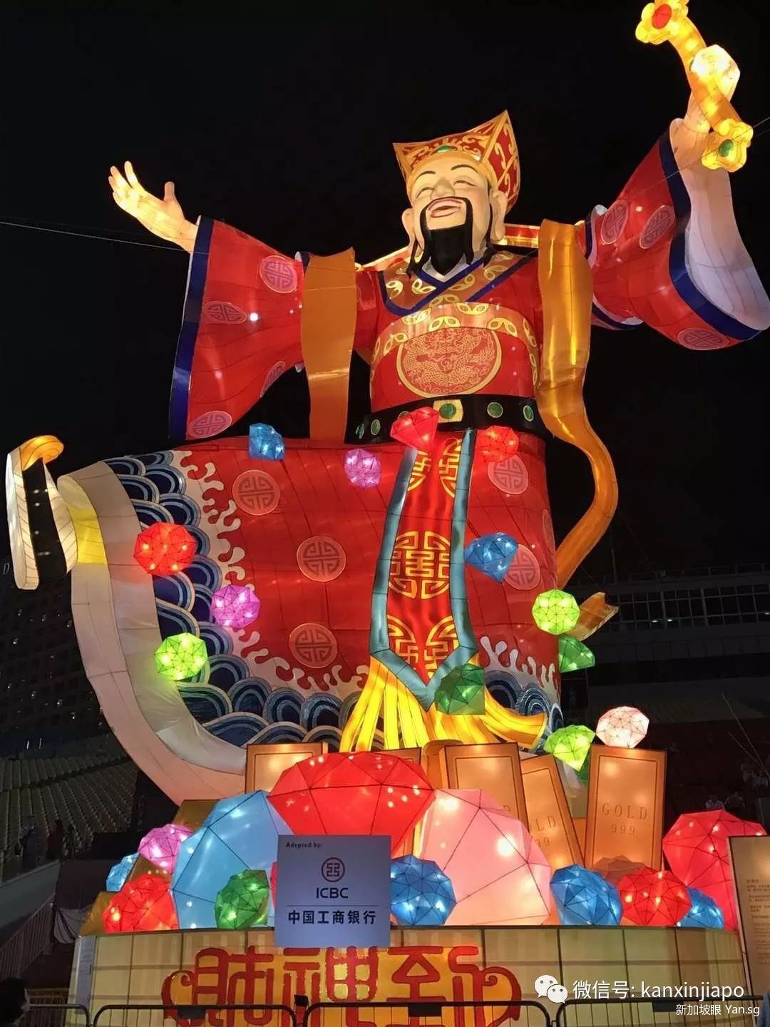 今年的”春到河畔”,是新加坡33年来规模最大、预算最高的一个“庙会”,燃炸了整个滨海湾!除了烟花,最耀眼的就是财神爷了。