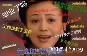 3、你毕业之后要留在新加坡,还是回国呀?如果你说想留下,他们就会搬出新加坡最近经济不好,不如回国发展啦,你要给爸妈养老啦blabla一大堆理由劝你回国。如果说想回国,他们又会说,那何必一开始出国呢,为了供你出国爸妈花了不少钱,能留下就留下吧…… 我闭麦吧……