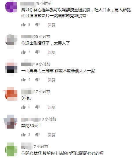 网友们似乎对于庹宗华的道歉并不买账,觉得他不应该拿醉酒作为举止不雅的借口。