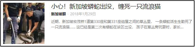 其实,新加坡经常有蟒蛇出没。任何时间,任何地点,都能见到它们……..
