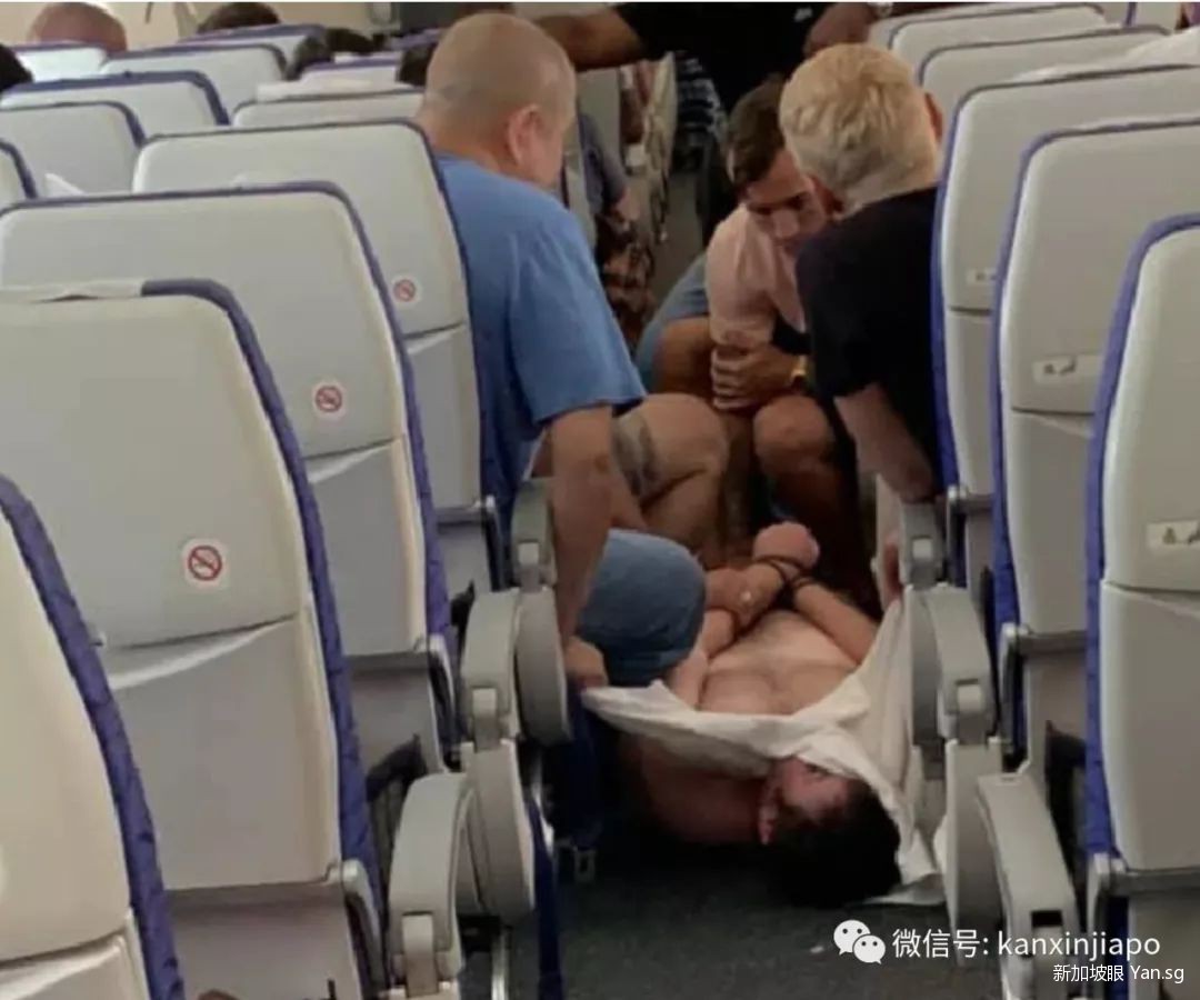 飞行途中,狭小的机舱,几个男子居然群殴??来来,感受一下,现场激烈的斗殴场面……