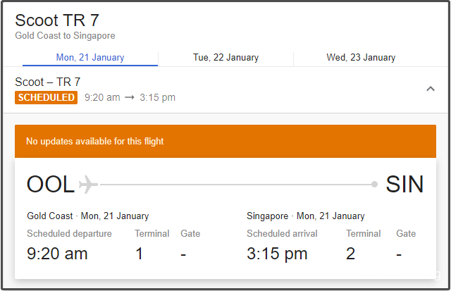这趟航班原定在昨天下午3点15分飞抵新加坡。